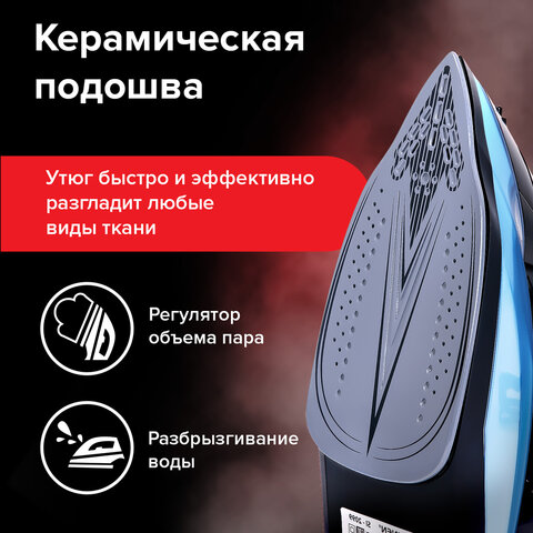 Утюг мощностью 2400 Вт станет надежным помощником в глажении вещей. Керамическая подошва равномерно распределяет тепло, гарантирует легкое скольжение по всем видам ткани, не оставляет на ткани блестящих следов. Она устойчива к появлению царапин и без труда очищается от загрязнений.