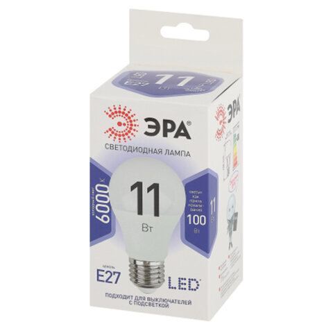 Тип цоколя : E27 Оттенок света: холодный белый Мощность: 11 Вт Тип лампы: светодиодная Тип колбы: груша Вид колбы: матовая Минимальное рабочее напряжение: 170 В Максимальное рабочее напряжение: 265 В Мощность эквивалентной по световому потоку лампы накаливания: 100 Вт Световой поток: 880 Лм Цветовая температура: 6000 К Индекс цветопередачи: 80 % Срок службы: 35000 ч. Высота (длина) лампы: 112 мм Диаметр лампы: 60 мм