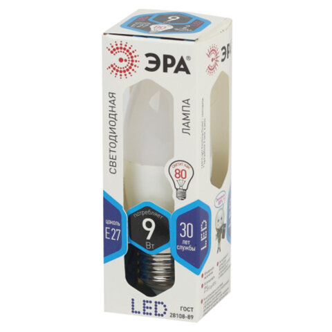 Тип цоколя : E27 Оттенок света: нейтральный белый Мощность: 9 Вт Тип лампы: светодиодная Тип колбы: свечеобразная Вид колбы: матовая Минимальное рабочее напряжение: 170 В Максимальное рабочее напряжение: 265 В Мощность эквивалентной по световому потоку лампы накаливания: 80 Вт Световой поток: 720 Лм Цветовая температура: 4000 К Индекс цветопередачи: 80 % Срок службы: 35000 ч. Высота (длина) лампы: 100 мм Диаметр лампы: 37 мм