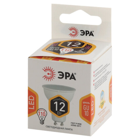 Тип цоколя : GU10 Оттенок света: теплый белый Мощность: 12 Вт Тип лампы: светодиодная Тип колбы: софит Вид колбы: матовая Минимальное рабочее напряжение: 170 В Максимальное рабочее напряжение: 265 В Мощность эквивалентной по световому потоку лампы накаливания: 110 Вт Световой поток: 960 Лм Цветовая температура: 2700 К Индекс цветопередачи: 80 % Срок службы: 35000 ч. Высота (длина) лампы: 50 мм Диаметр лампы: 50 мм