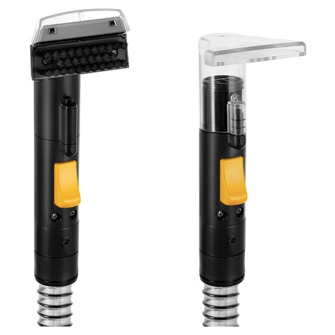 Чистая вода проходит через фильтр, который задерживает крупные частицы, если они случайно попали в воду. Второй фильтр установлен на выходе из резервуара для грязной воды. На воздухоотводящих отверстиях есть 2 фильтра от выброса в воздух пыли.