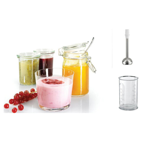 - измельчитель с мерным стаканом позволяет готовить пюре, коктейли и другие смеси с точными пропорциями.