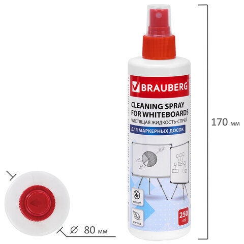 Чистящая жидкость-спрей BRAUBERG предназначена для очистки поверхности маркерных досок.