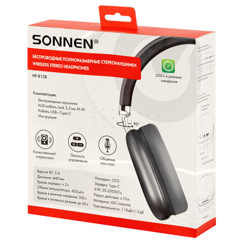 Наушники SONNEN HP-BH12B – это качественный и стильный аксессуар для повседневной жизни и отдыха.