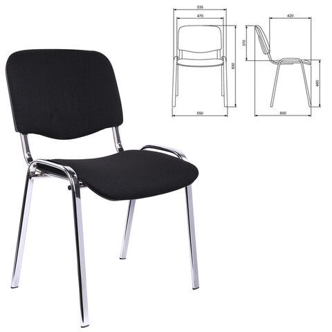 Цвет обивки: черный Материал обивки: ткань Макс. нагрузка: 110 кг Цвет (покрытие) каркаса: хромированный Высота стула: 830 мм Ширина стула: 550 мм Глубина стула: 600 мм Высота до сиденья: 460 мм Количество в комплекте: 1 шт. Серия: ИЗО (хромированный каркас) Соответствует требованиям ГОСТа: ГОСТ 19917-2014