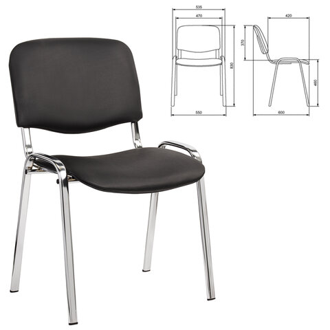 Цвет обивки: черный Материал обивки: кожзам Макс. нагрузка: 110 кг Цвет (покрытие) каркаса: хромированный Высота стула: 830 мм Ширина стула: 550 мм Глубина стула: 600 мм Высота до сиденья: 460 мм Количество в комплекте: 1 шт. Серия: ИЗО (хромированный каркас) Соответствует требованиям ГОСТа: ГОСТ 19917-2014