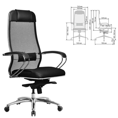 Материал обивки: сетка/экокожа Infinity Easy Clean Максимальная нагрузка: до 150 кг Цвет обивки: черный Тип механизма кресла: "Мультиблок" - качание с плавным ходом и фиксацией в нескольких положениях Сетчатая спинка: да Крестовина (пятилучие): полированный алюминий Подлокотники: хром с накладками Минимальная высота кресла: 1205 мм Максимальная высота кресла: 1280 мм Ширина кресла: 710 мм Минимальная высота до сиденья: 485 мм Максимальная высота до сиденья: 560 мм Сиденье ширина: 510 мм Сиденье глубина: 460 мм Спинка ширина: 510 мм Спинка высота: 860 мм Серия: SAMURAI Соответствует требованиям ГОСТа: ГОСТ 19917-93 Поставляется в разобранном виде: да