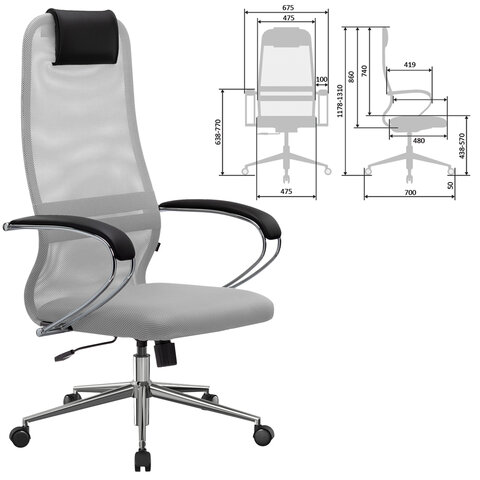Материал обивки: ткань/сетка Максимальная нагрузка: до 150 кг Цвет обивки: светло-серый Тип механизма кресла: "Топ-ган" - качание с регулировкой под вес и фиксацией в 1 положении Сетчатая спинка: да Крестовина (пятилучие): металл/хромированный металл Подлокотники: хром с накладками Минимальная высота кресла: 1178 мм Максимальная высота кресла: 1310 мм Ширина кресла: 675 мм Минимальная высота до сиденья: 438 мм Максимальная высота до сиденья: 570 мм Сиденье ширина: 475 мм Сиденье глубина: 480 мм Спинка ширина: 475 мм Спинка высота: 860 мм Серия: SU-8 Соответствует требованиям ГОСТа: ГОСТ 19917-93 Поставляется в разобранном виде: да