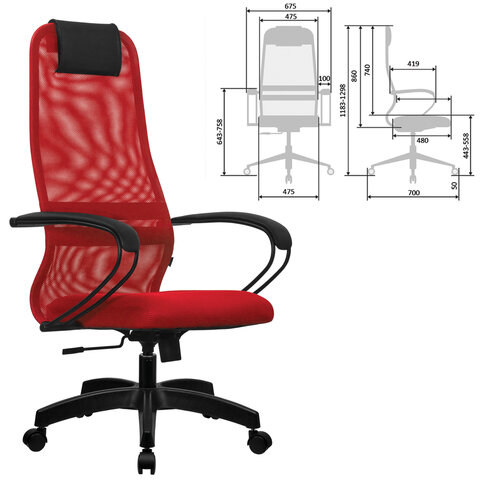 Кресло офисное МЕТТА "SU-B-8" пластик, ткань-сетка, сиденье мягкое, красное
