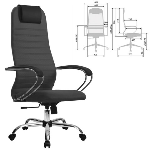 Материал обивки: ткань/сетка Максимальная нагрузка: до 150 кг Цвет обивки: темно-серый Тип механизма кресла: "Топ-ган" - качание с регулировкой под вес и фиксацией в 1 положении Сетчатая спинка: да Крестовина (пятилучие): металл/хромированный металл Подлокотники: хром с накладками Минимальная высота кресла: 1178 мм Максимальная высота кресла: 1310 мм Ширина кресла: 675 мм Минимальная высота до сиденья: 438 мм Максимальная высота до сиденья: 570 мм Сиденье ширина: 475 мм Сиденье глубина: 480 мм Спинка ширина: 475 мм Спинка высота: 860 мм Серия: SU-10 Соответствует требованиям ГОСТа: ГОСТ 19917-93 Поставляется в разобранном виде: да