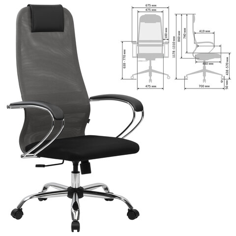 Материал обивки: ткань/сетка Х2 Максимальная нагрузка: до 150 кг Цвет обивки: черный/серый Тип механизма кресла: "Топ-ган" - качание с регулировкой под вес и фиксацией в 1 положении Сетчатая спинка: да Крестовина (пятилучие): металл/хромированный металл Подлокотники: хром с накладками Минимальная высота кресла: 1178 мм Максимальная высота кресла: 1310 мм Ширина кресла: 675 мм Минимальная высота до сиденья: 438 мм Максимальная высота до сиденья: 570 мм Сиденье ширина: 475 мм Сиденье глубина: 480 мм Спинка ширина: 475 мм Спинка высота: 860 мм Серия: EX-800 Соответствует требованиям ГОСТа: ГОСТ 19917-93 Поставляется в разобранном виде: да