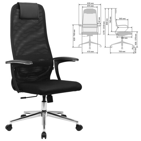 Материал обивки: ткань/сетка Х2 Максимальная нагрузка: до 150 кг Цвет обивки: черный Тип механизма кресла: "Топ-ган" - качание с регулировкой под вес и фиксацией в 1 положении Сетчатая спинка: да Крестовина (пятилучие): металл/хромированный металл Подлокотники: металлические с мягкими накладками Минимальная высота кресла: 1178 мм Максимальная высота кресла: 1310 мм Ширина кресла: 639 мм Минимальная высота до сиденья: 438 мм Максимальная высота до сиденья: 570 мм Сиденье ширина: 475 мм Сиденье глубина: 480 мм Спинка ширина: 475 мм Спинка высота: 860 мм Серия: EX-801 Соответствует требованиям ГОСТа: ГОСТ 19917-93 Поставляется в разобранном виде: да