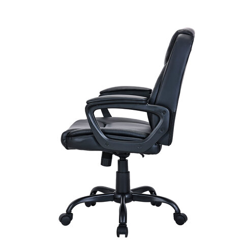 Материал обивки: экокожа Максимальная нагрузка: до 125 кг Цвет обивки: черный Тип механизма кресла: "Топ-ган" - качание с регулировкой под вес и фиксацией в 1 положении Крестовина (пятилучие): металл Подлокотники: пластик с накладками Минимальная высота кресла: 950 мм Максимальная высота кресла: 1020 мм Ширина кресла: 610 мм Минимальная высота до сиденья: 475 мм Максимальная высота до сиденья: 555 мм Сиденье ширина: 510 мм Сиденье глубина: 445 мм Спинка ширина: 510 мм Спинка высота: 550 мм Серия: Forex Соответствует требованиям ГОСТа: нет Поставляется в разобранном виде: да