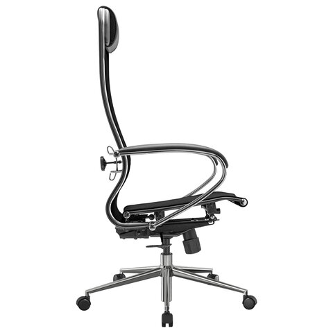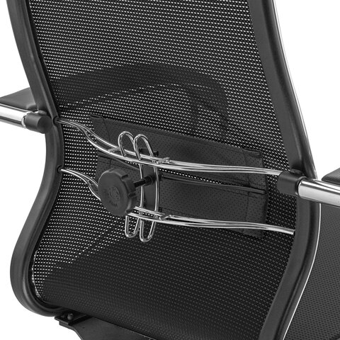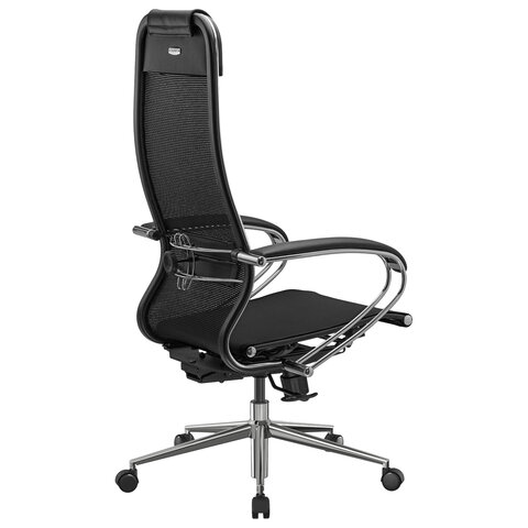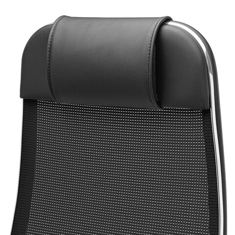 Спинка высокая, эргономичной формы с ярко выраженной поясничной поддержкой, с хромированным молдингом.