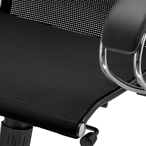 Материал обивки: сетка/экокожа Максимальная нагрузка: до 150 кг Цвет обивки: черный Тип механизма кресла: "Топ-ган" - качание с регулировкой под вес и фиксацией в 1 положении Сетчатая спинка: да Крестовина (пятилучие): хромированный металл Подлокотники: металл с накладками Минимальная высота кресла: 1178 мм Максимальная высота кресла: 1310 мм Ширина кресла: 675 мм Минимальная высота до сиденья: 464 мм Максимальная высота до сиденья: 596 мм Сиденье ширина: 475 мм Сиденье глубина: 480 мм Спинка ширина: 475 мм Спинка высота: 860 мм Серия: К-12 Соответствует требованиям ГОСТа: ГОСТ 19917-2014 Поставляется в разобранном виде: да