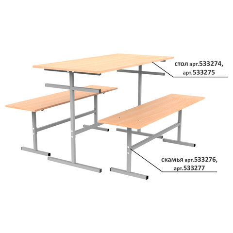 Стол для столовых "ССТ 1200" удобен, практичен, неприхотлив в обслуживании, идеально подходит для школ и других заведений. На каркасе предусмотрены кронштейны для компактного размещения скамьи под крышкой стола. Столешница ЛДСП.