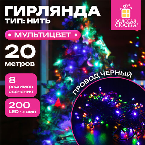 Использование: помещение Тип электрогирлянды: Нить комнатная "Стандарт" Количество режимов: 8 Наличие контроллера: да Длина: 20 м Мощность: 4 Вт Количество ламп: 200 шт. Тип ламп: светодиодная Форма ламп/фигуры: цилиндр Цвет ламп: мультицветный Цвет провода: черный Питание: сеть Упаковка единицы товара: картонная коробка