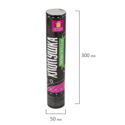 Пневматическая хлопушка ЗОЛОТАЯ СКАЗКА предназначена для создания отличного настроения и атмосферы настоящего веселья на любом празднике - новогодней вечеринке, торжестве в честь Дня Рождения, выпускном, корпоративе или любом другом праздничном событии.