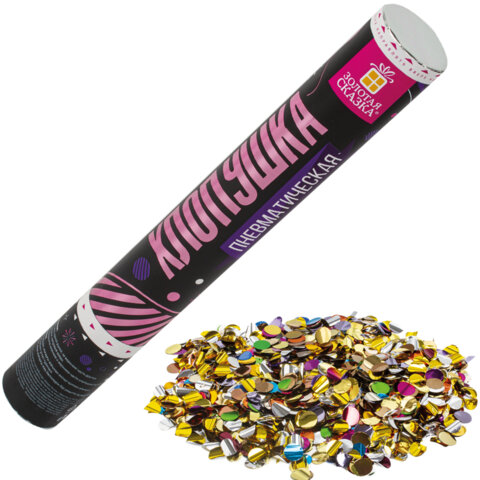 Хлопушка пневматическая ЗОЛОТАЯ СКАЗКА 30 см, фольга, конфетти, ассорти, 591473
