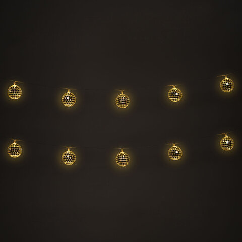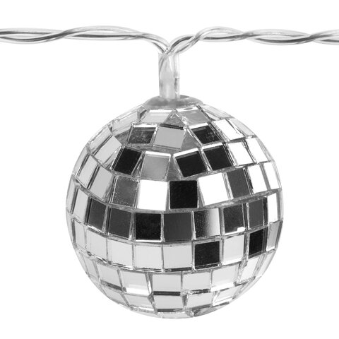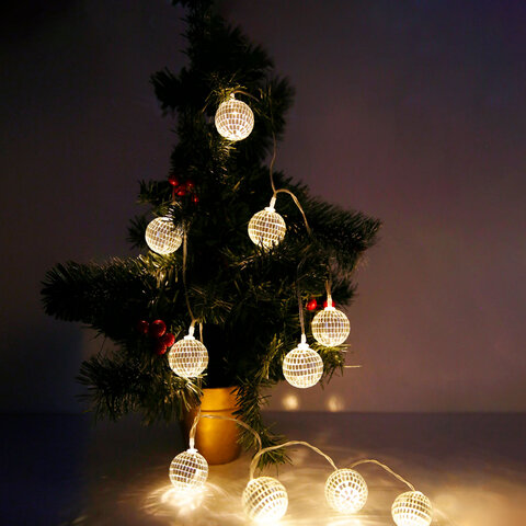 Форма – "диско-шары", внутри которых находятся светодиодные лампы 10 шт. Диаметр шара – 4 см. Лампы сделаны на основе технологии LED, которая является более безопасной и эффективной по сравнению с лампой накаливания.