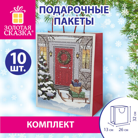 Подарочный новогодний пакет (КОМПЛЕКТ 10 штук) "Сочельник" ЗОЛОТАЯ СКАЗКА – отличное решение для упаковки любого презента, которое позволит легко и со вкусом оформить выбранный подарок.