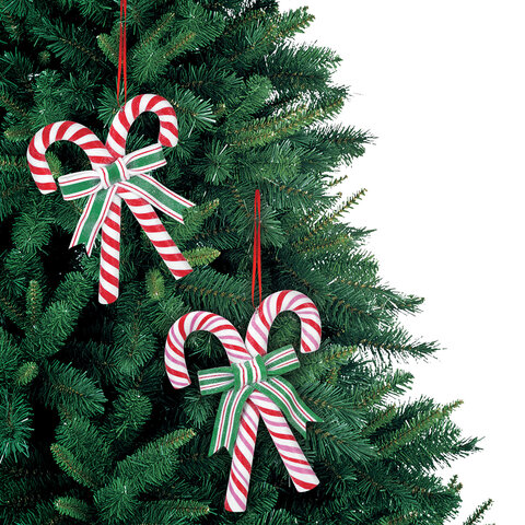 Оригинальным решением украсить новогоднюю ель станет фигурная елочная игрушка. Украшение, выполненное в виде карамельной трости, крепится на зимнюю красавицу за подвязочную веревочку. Эта фигурка станет прекрасным дополнением к Вашему новогоднему декору!