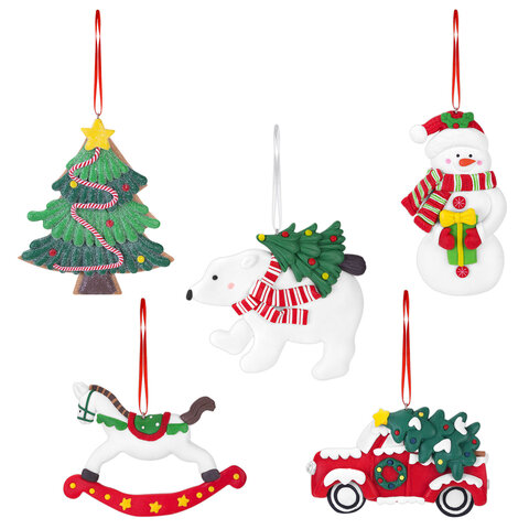 Елочное украшение выполнено в 5 дизайнах (без возможности выбора): белый мишка, очаровательный снеговик, нарядная елочка, лошадка-качалка и везущая праздничную елку машинка. Вы можете собрать целую коллекцию! Любое из этих украшений придаст Вашей ёлке неповторимость и добавит волшебства в праздник!