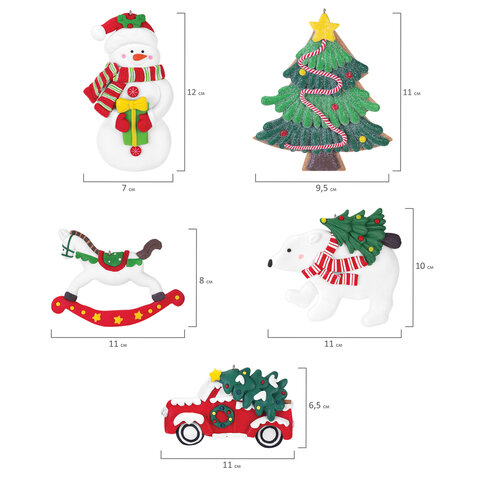 Материал – полимерная глина. Каждое елочное украшение имеет бумажную этикетку и упаковано в воздушно-пузырчатую плёнку для защиты от повреждений.