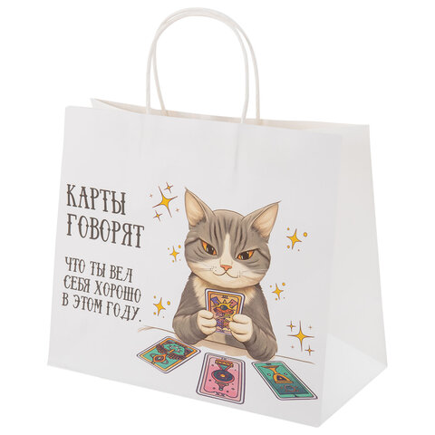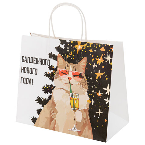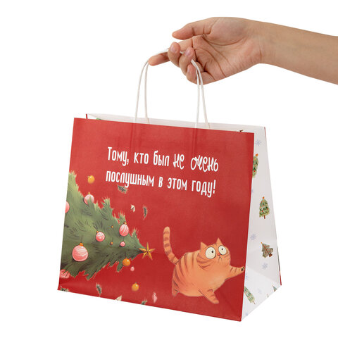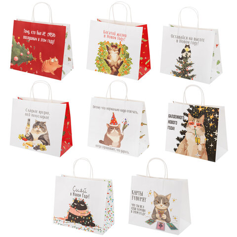 Вид пакета: горизонтальный Количество в комплекте: 1 шт. Дизайн: Котики Материал: крафт Эффект: отсутствует С рисунком: да Цвет: ассорти Тип: новогодний Размер пакета: 28х14х24 см