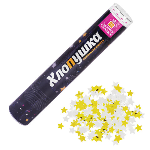 Хлопушка пневматическая ЗОЛОТАЯ СКАЗКА 30 см, фольга, серпантин, ассорти, 591474