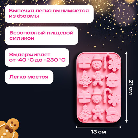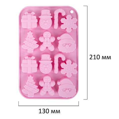 Тип товара: форма для выпечки Размер: 21х13 см Количество в комплекте: 1 шт. Цвет: розовый Дизайн: Xmas Sweets