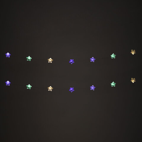 Использование: помещение Тип электрогирлянды: Нить "Декоративная" Количество режимов: 1 Длина: 2 м Мощность: 0.6 Вт Количество ламп: 20 шт. Тип ламп: светодиодная Форма ламп/фигуры: звезда Цвет ламп: мультицветный Цвет провода: прозрачный Питание: батарейки AA, 2 шт. Упаковка единицы товара: картонная коробка