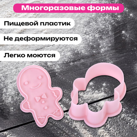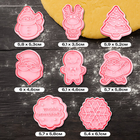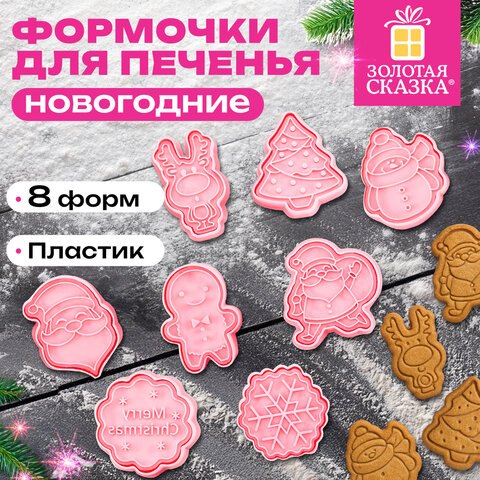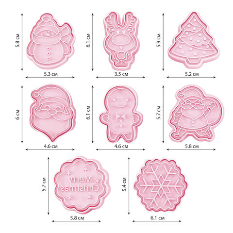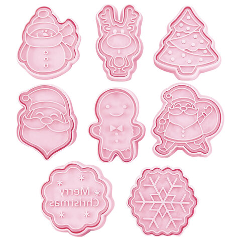 Тип товара: форма для выпечки Размер: ассорти см Количество в комплекте: 8 шт. Цвет: розовый Дизайн: Новогодние персонажи