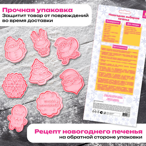 Набор формочек новогодний для печенья, "Печеньки", 8 шт., пластик, рецепт, ЗОЛОТАЯ...