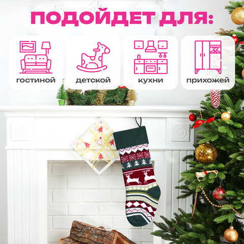 Создайте неповторимую атмосферу праздника, повесив носок у камина или на стене. Он привлечет взгляды и станет магнитом для улыбок, напоминая всем о волшебстве новогодней ночи.
