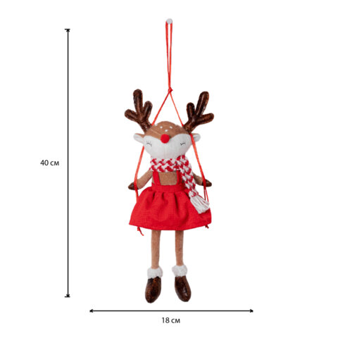 Тип товара: Интерьерная фигурка Материал: полиэстер, дерево Длина: 40 см Ширина: 18 см Цвет: комбинированный Способ крепления: подвязочная веревочка Дизайн: Оленёнок на качелях