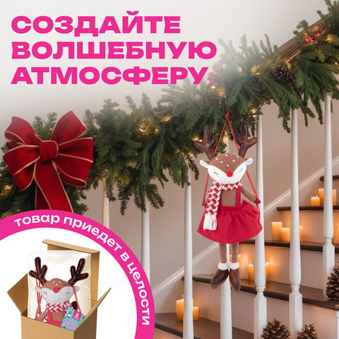 Новогоднее украшение интерьера в виде олененка на качелях ЗОЛОТАЯ СКАЗКА – это идеальный выбор для тех, кто хочет добавить в свой праздничный декор нотку волшебства и очарования.