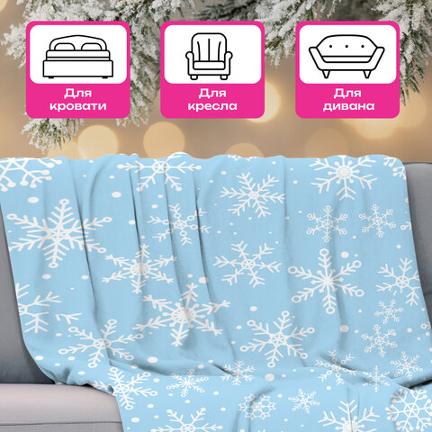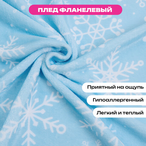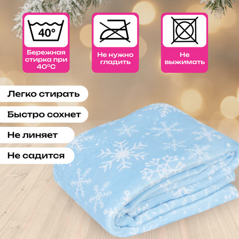 Плед выполнен из полиэстера. Его поверхность украшена нежными снежинками, которые создают ощущение зимней сказки. Лёгкий голубой фон добавляет свежести и воздушности, а белые снежинки придают ему праздничный блеск. Такой плед не только согреет вас физически, но и подарит эмоциональное тепло, напоминая о предстоящих новогодних чудесах.
