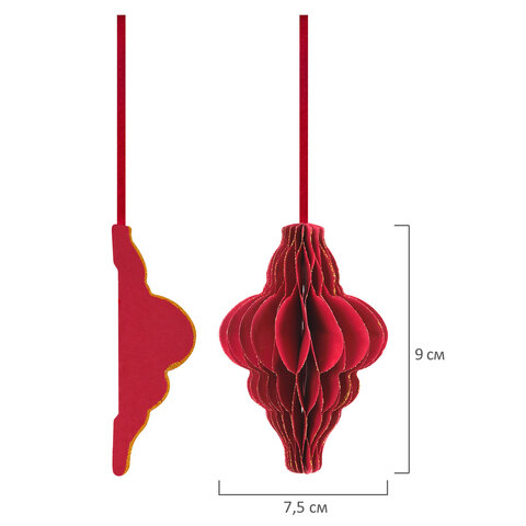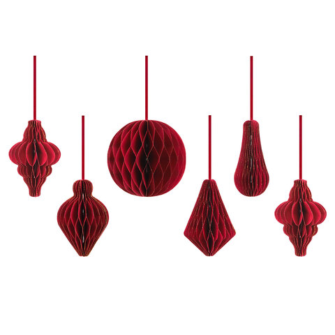 Тип украшения: набор украшений для ели Количество в наборе: 6 шт. Материал: бумага Высота: 10 см Ширина: 10 см Цвет: бордовый Серия: ЭКО Упаковка: пакет с европодвесом