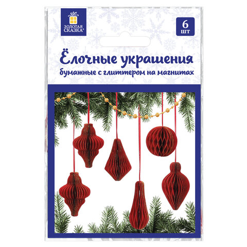 Набор декоративных украшений ЗОЛОТАЯ СКАЗКА для новогодней ели из бумаги разной формы наполнит Ваш дом волшебной атмосферой праздника.