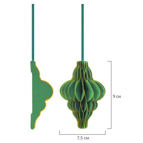 В наборе украшения размером 9х6.5 см, 9х7.5 см (2 шт.), 9.5х6 см, 10х4 см, 10х10 см. Цвет украшений – изумрудный. В верхней части декоративные украшения имеют петлю для подвешивания изделия.