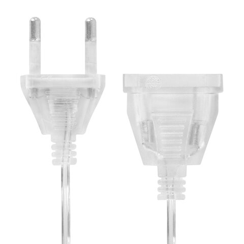 Электрический удлинитель представляет собой медный провод, помещенный в термическую усадочную трубку из поливинилхлорида, оснащенную штепсельной вилкой с одного конца провода и штепсельной розеткой – с другой. Тип используемой штепсельной вилки для соединения с источником питания – europlug (CEE 7/4). Данный тип вилки рассчитан на напряжение до 230 В и ток силой до 16 А. Длина провода – 3 м. Удлинитель предназначен для подключения электрогирлянд в местах, удалённых от стационарных розеток, и только внутри помещений.