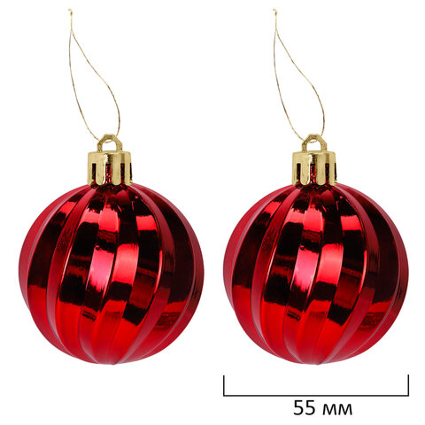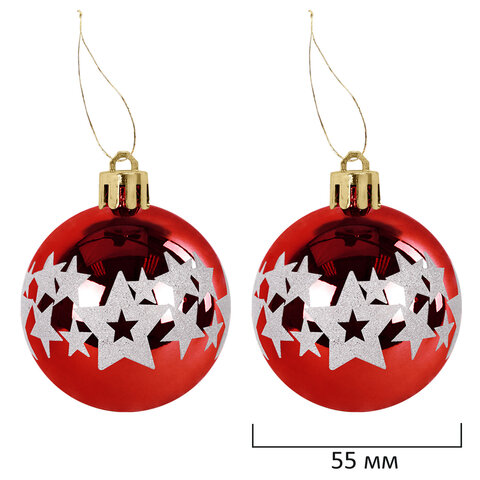 - 2 шара красного цвета с глянцевым эффектом и объемным рисунком (диаметром 5,5 см),