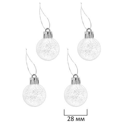 - 4 шара белого цвета с эффектом глиттер (диаметром 2,8 см),