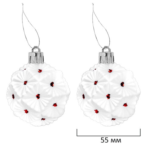 - 2 шара белого цвета с матовым эффектом и красным рисунком (диаметром 5,5 см),