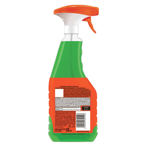 Средство предназначено для мытья оконных, витринных и автомобильных стекол, зеркал, кафеля, внешних панелей электробытовых приборов, хромированных и других поверхностей. Содержит нашатырный спирт, эффективно удаляющий грязь, жир, минеральные масла.