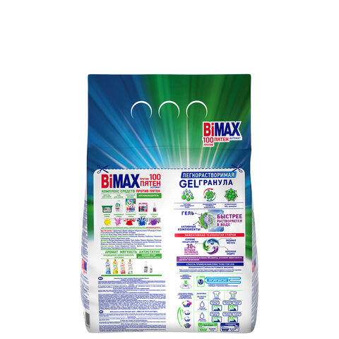 Стиральный порошок BIMAX "100 пятен" Автомат – это высокоэффективное средство для стирки, которое быстро и эффективно устраняет даже самые сложные пятна на одежде и других текстильных изделиях.