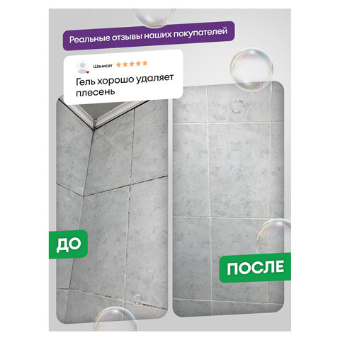 Обладает дезинфицирующими свойствами, удаляет плесень и грибок. Пары средства защищают от «летающих» микробов. Густая формула позволяет средству дольше оставаться на стенках, продолжая работать.