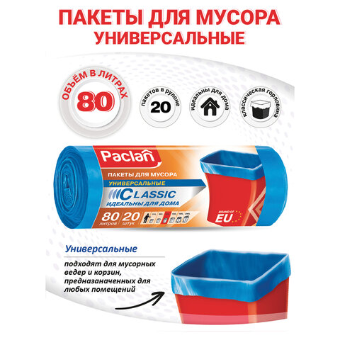 Объем: 80 л Цвет: синий Прочность: стандартная Количество в комплекте: 20 шт. Толщина полиэтилена: 12 мкм Материал: ПНД Серия: Classic Тип дна: крестообразное Тип упаковки: рулон Соответствует требованиям ГОСТа: ГОСТ 12302-2013 Ширина: 70 см Длина: 90 см