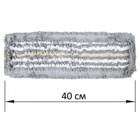МОП имеет форму плоского прямоугольника, такая форма и чистящая поверхность позволяет удобно собрать грязь по углам и захватить большую площадь убираемой поверхности, что в свою очередь уменьшает временные затраты на уборку больших площадей. Устойчива к износу, что обеспечивает долгий срок службы уборочного инструмента. Выполнена из хлопка с добавлением микрофибры и имеет размер 40х11 см.